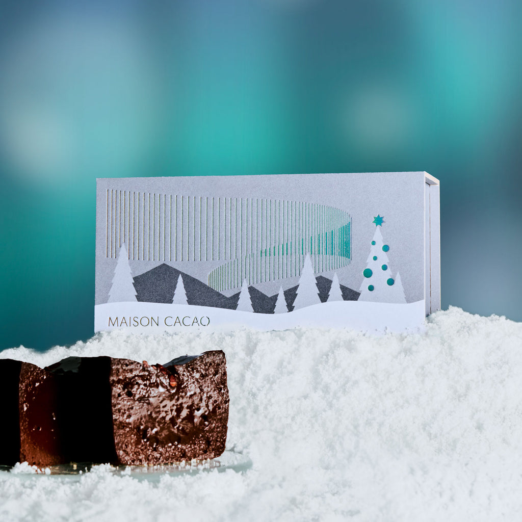 そんなオーロラシーズンを飾る今回のコレクション。やわらかなオーロラの光が空を包み込むように、チョコレートに優しく包まれたとろける時間をお届けします。