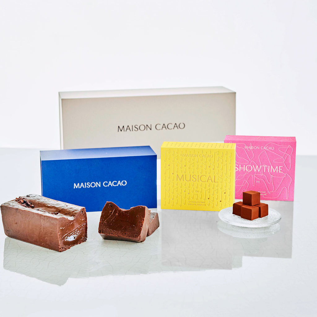 ロングセラーの「生ガトーショコラ」と、春の限定コレクションより旬を迎えたフルーツの魅力をギュッと凝縮したアロマ生チョコレート2種のセット。